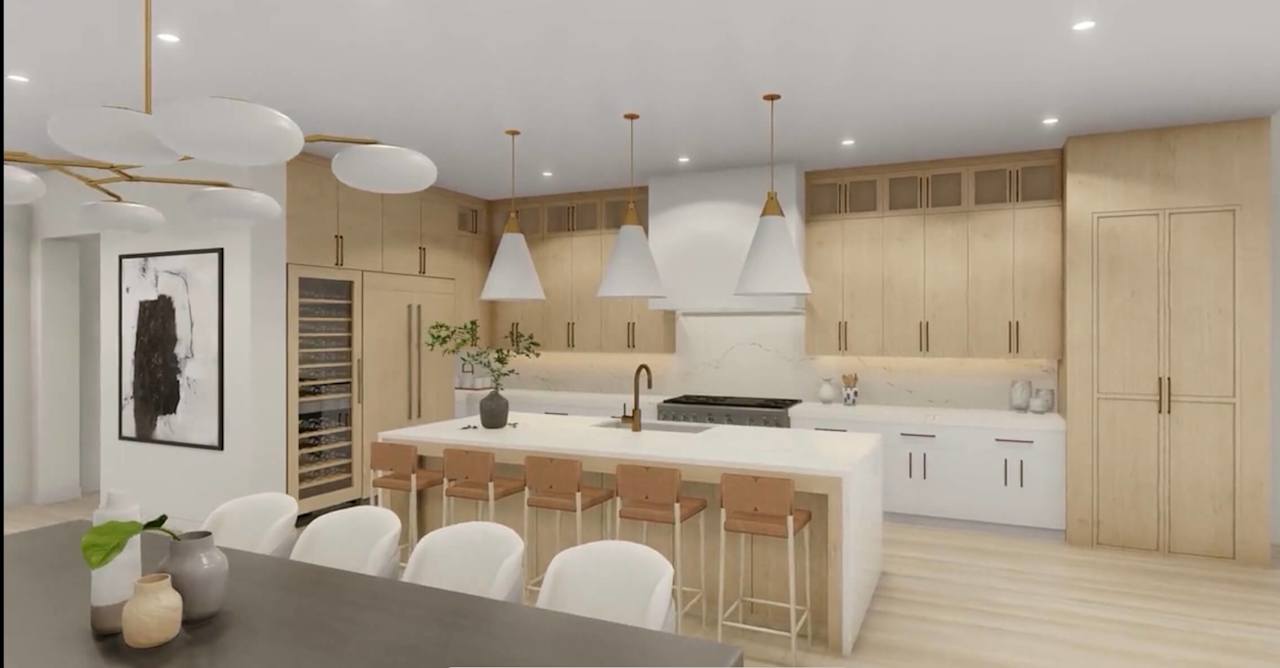 Thoughtfully designed gourmet chef’s kitchen boasting New Style cabinetry, Wolf and Subzero appliances and full walking pantry. Oversized island and impressive ceiling treatment and millwork bring together the dining and great room.